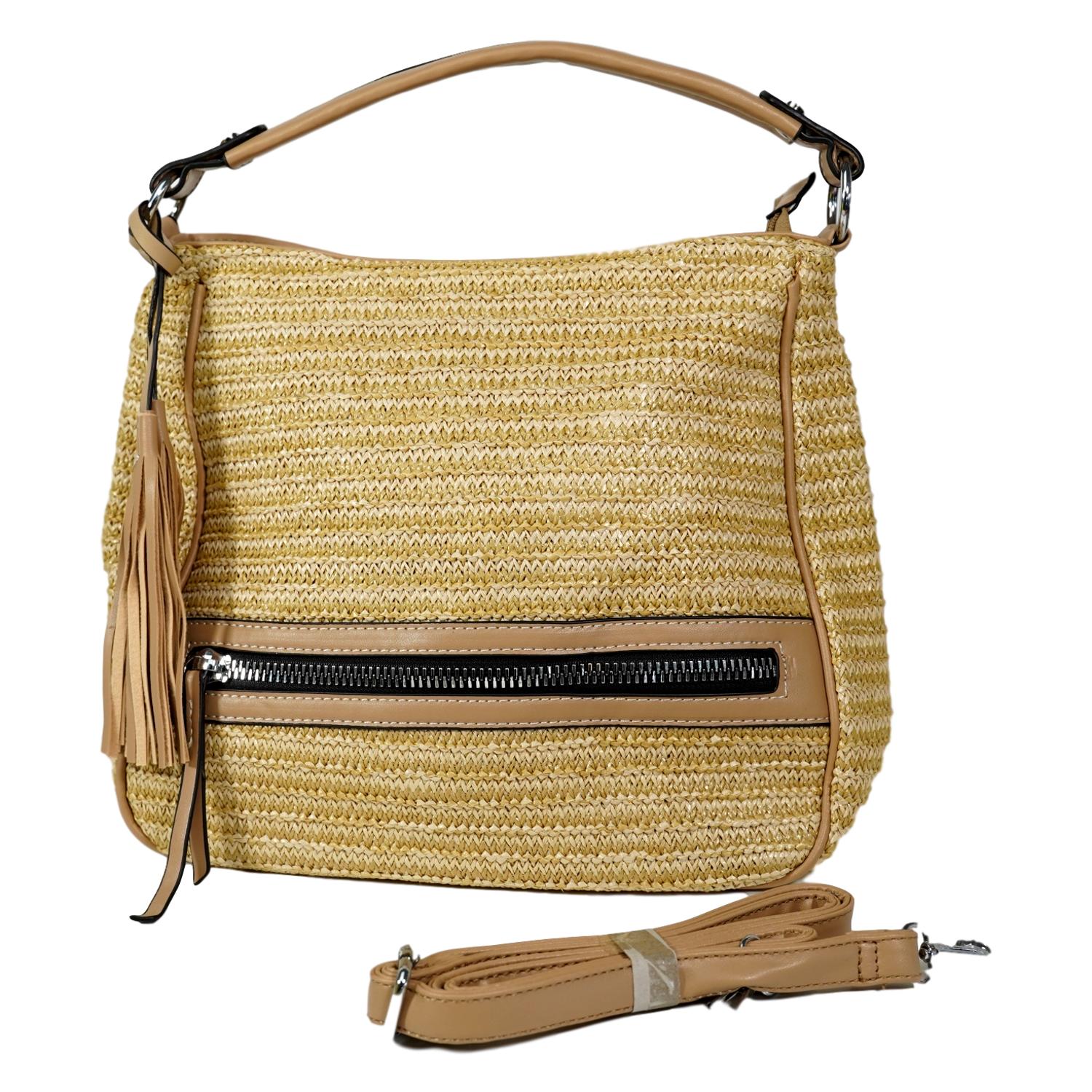Capazo de hombro y bandolera cuadrado de bambú cierre de cremallera. Bolso de verano de Yute 2020