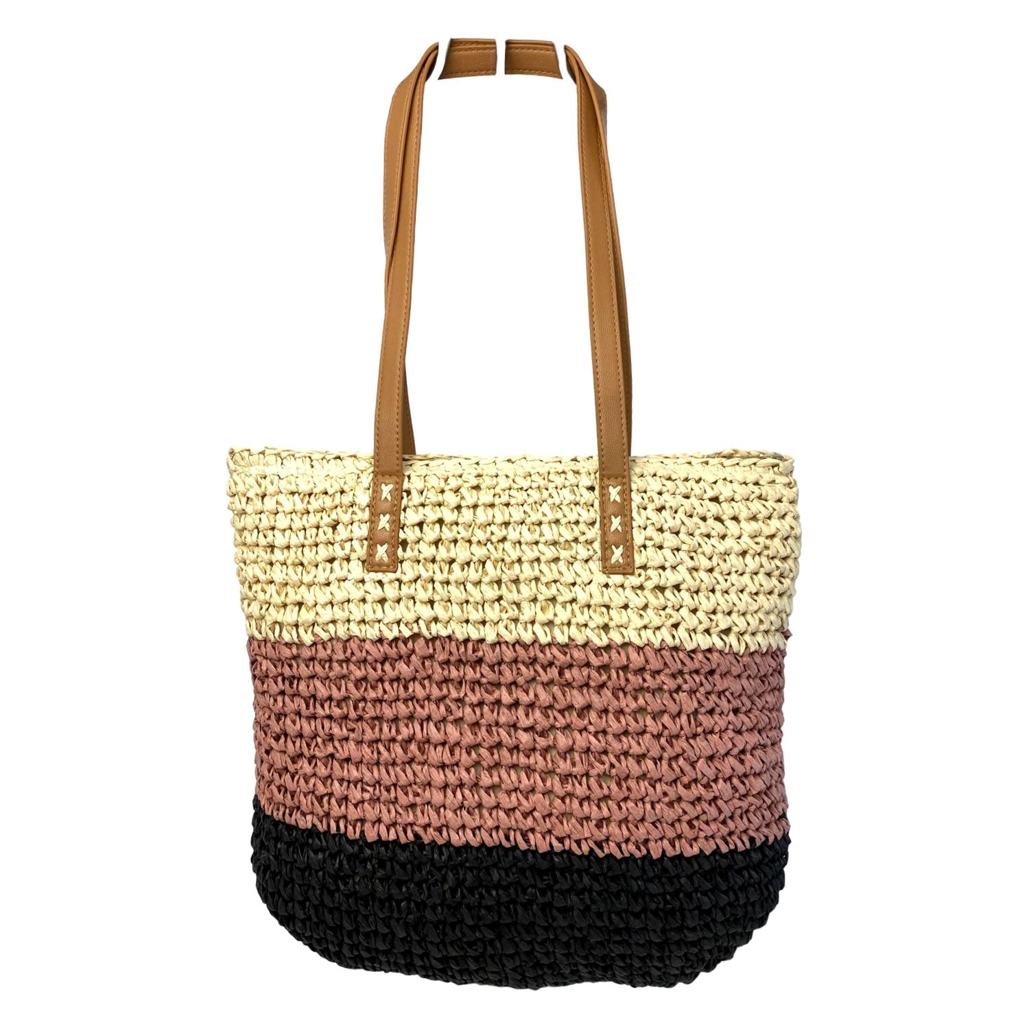 Capazo Multicolor echo de Rafia con Bolsillo Interior y Cierre de Cremallera Primavera Verano 2020