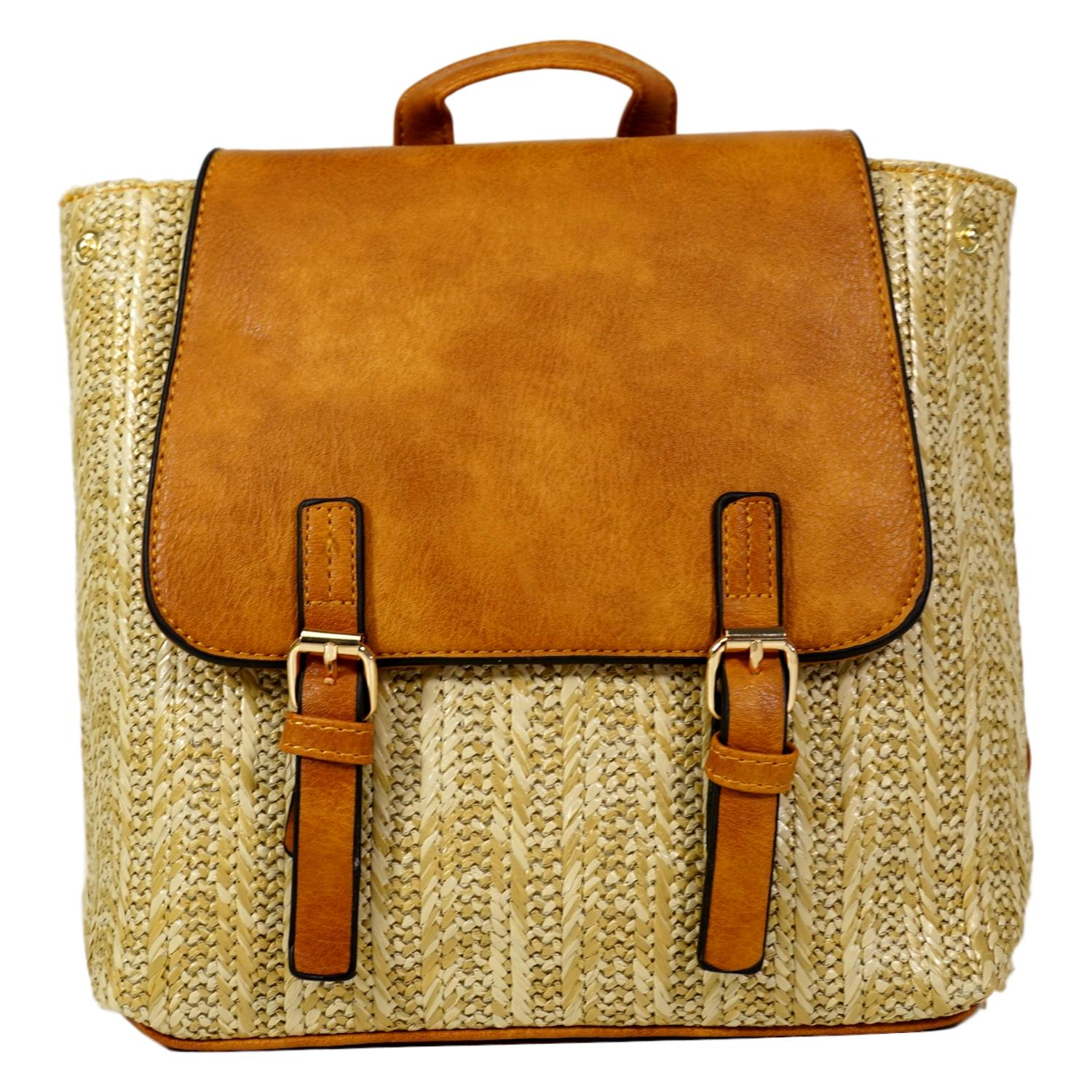 Mochila de Rafia Estilo Bombonera con Doble Cierre de Hebillas Asas Ajustables Primavera Verano 2020