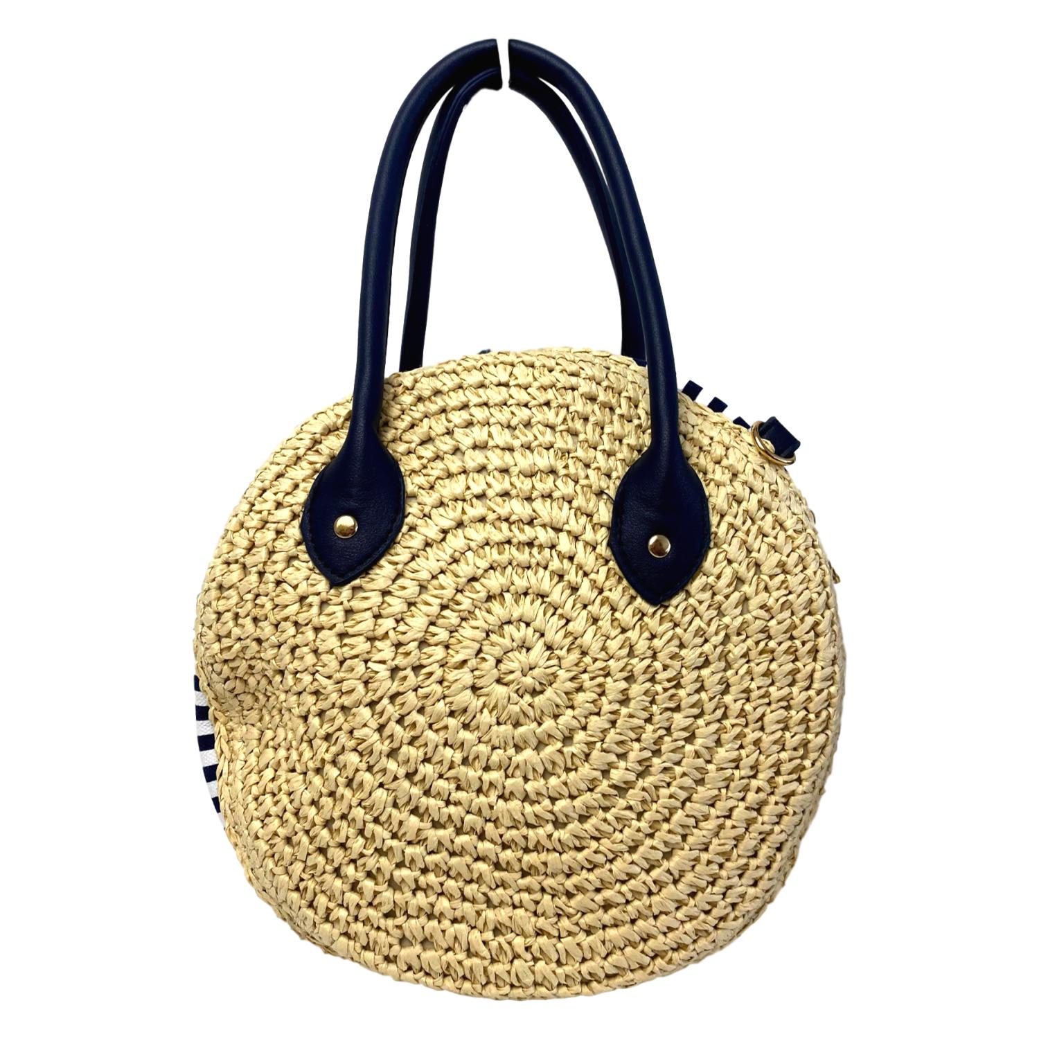 Bolso de Hombro echo de Rafia con Franjas Marineras en los Lados Cierre de Cremallera Primavera Verano 2020