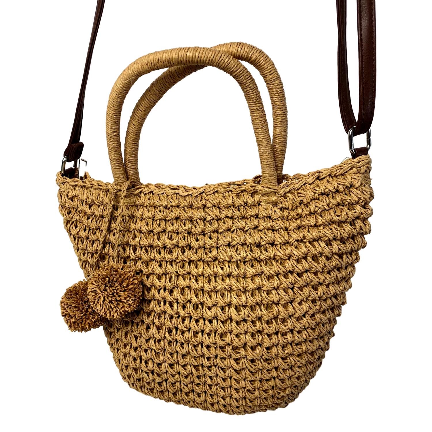Bandolera de Rafia con Bolsillo Interior y Asa Ajustable Para llevar a Mano o el Hombro Cierre de Cremallera Primavera Verano 2020