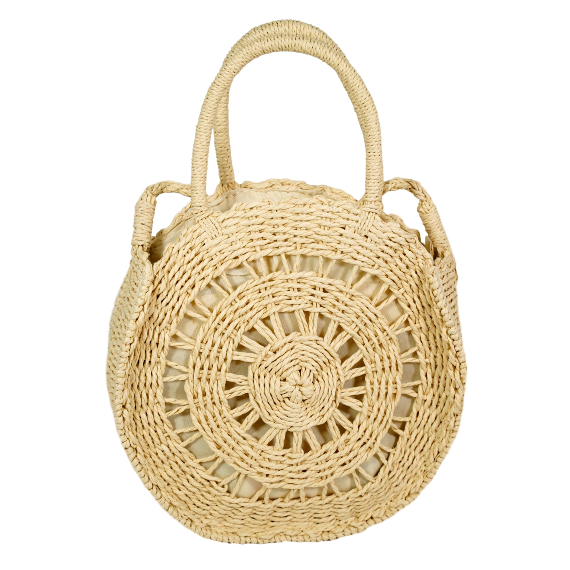 Bolso de Hombro Redondo de Bambú con Doble Bolsillo Dentro Primavera Verano 2020