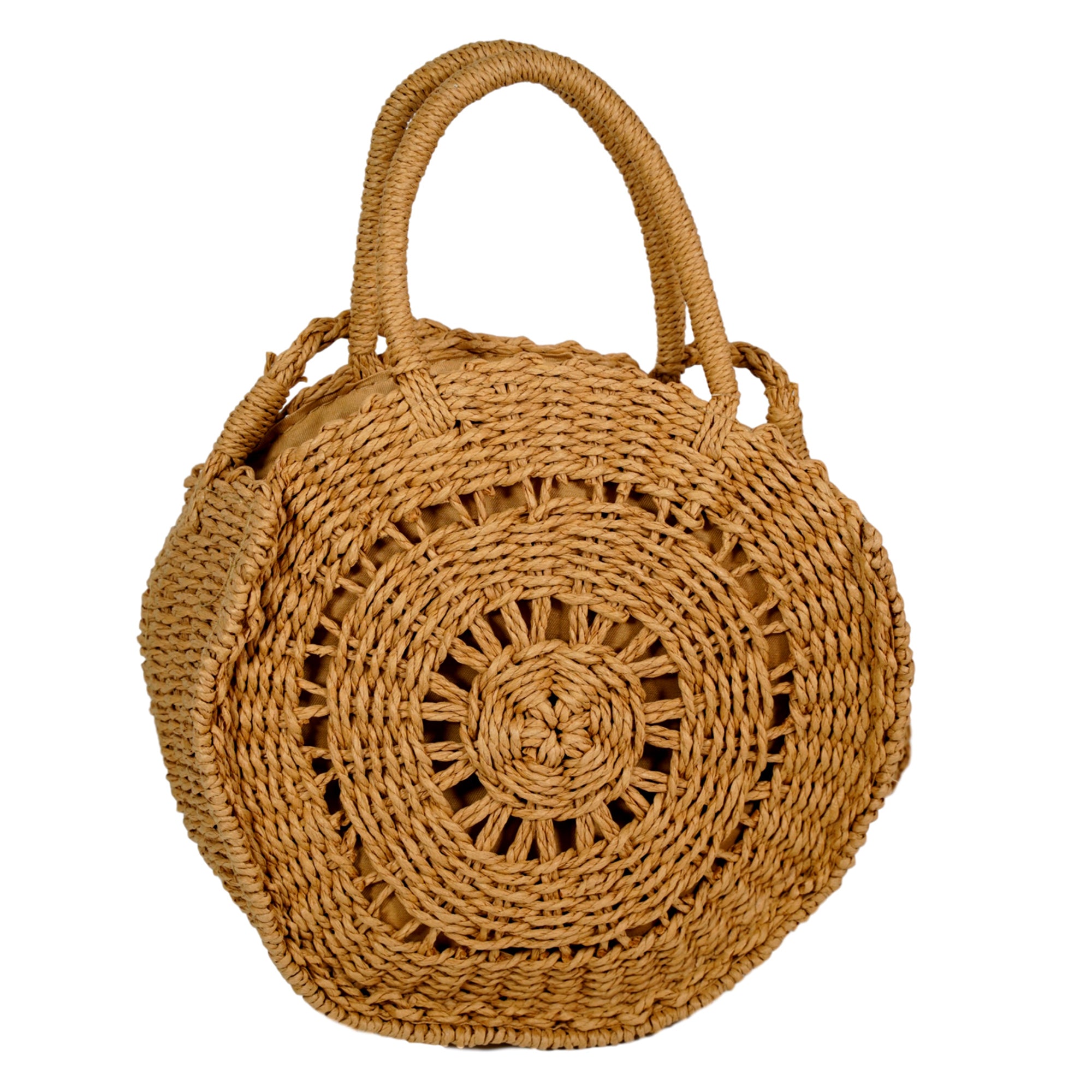 Bolso de Hombro Redondo de Bambú con Doble Bolsillo Dentro Primavera Verano 2020