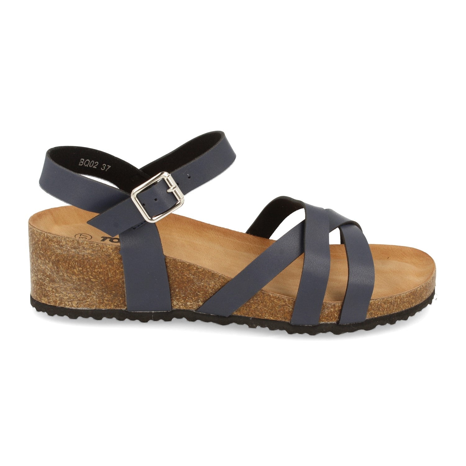 Sandalia de Cuña para Mujer con Planta Comoda Anatomica Triple Palas Cruzadas Cierre de Hebilla Primavera Verano 2020